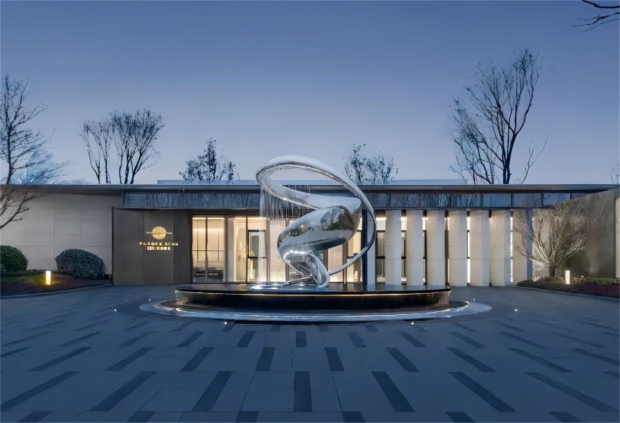 Курортные отели: Скульптуры, вдохновленные природой, возможно, струящаяся вода или безмятежные фигуры, могут вызвать расслабление и гармонию.