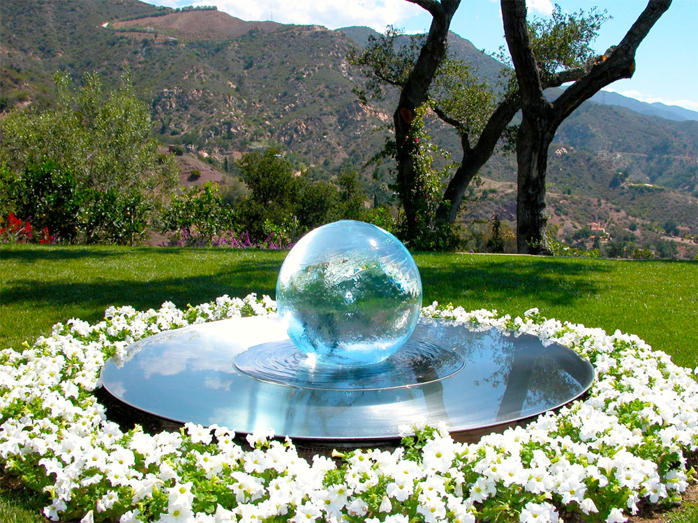 Этот шарообразный фонтан выполнен в чистейшей геометрической форме – сфере, как высший геометрический символ, имеющий важное значение во многих культурах. Изделие изготовлено из прозрачных материалов и нержавеющей стали, которые создают различные спектры под действием солнечного света, и его эффект меняется со временем, создавая волшебное ощущение. Иногда из-за визуального обмана даже невозможно определить точное положение объекта.