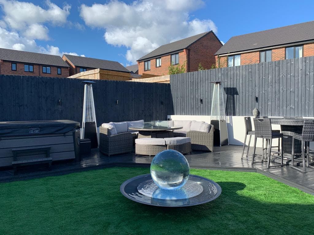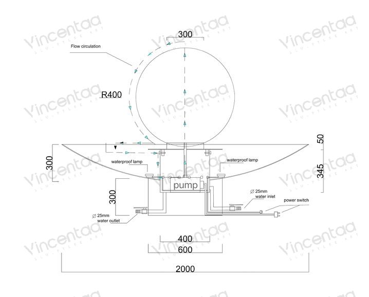 Шарообразный фонтан изготовлен из нержавеющей стали №304 и акрила. Он изготовлен вручную, а процесс установки прост: достаточно наполнить его водой и включить водяной насос.