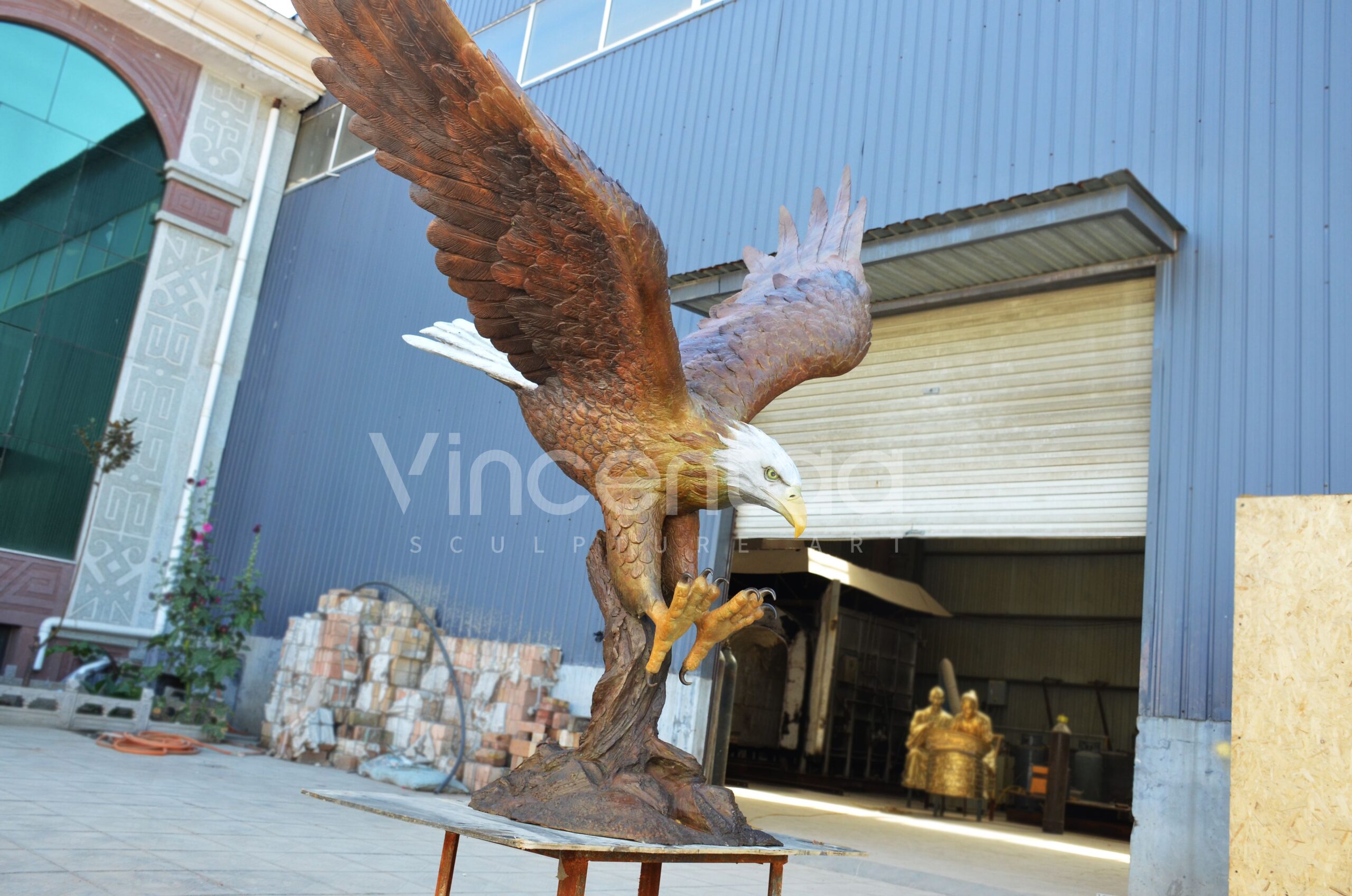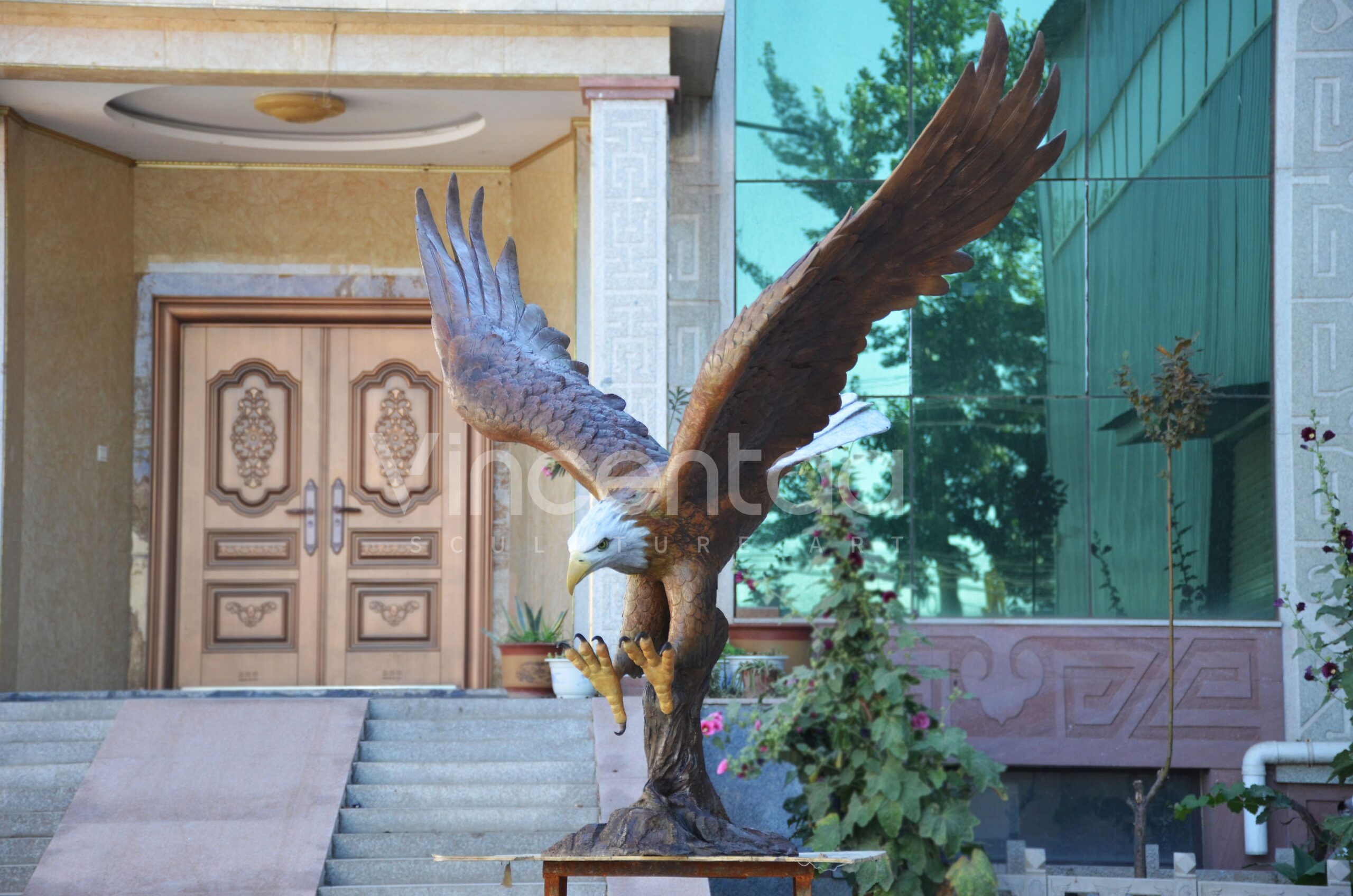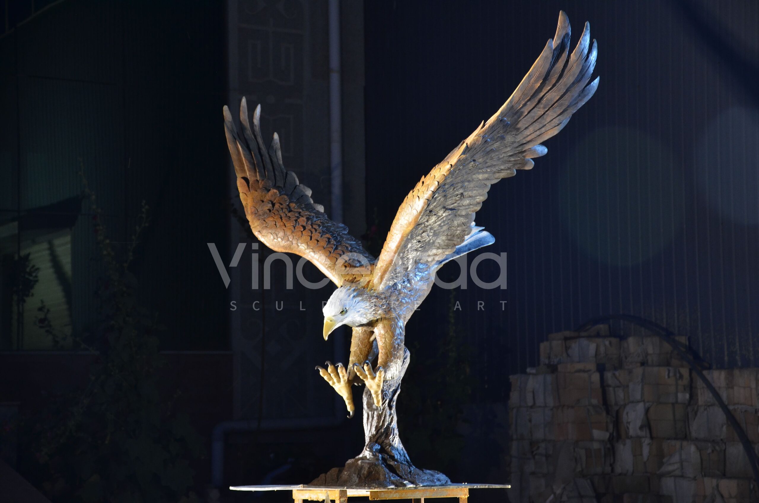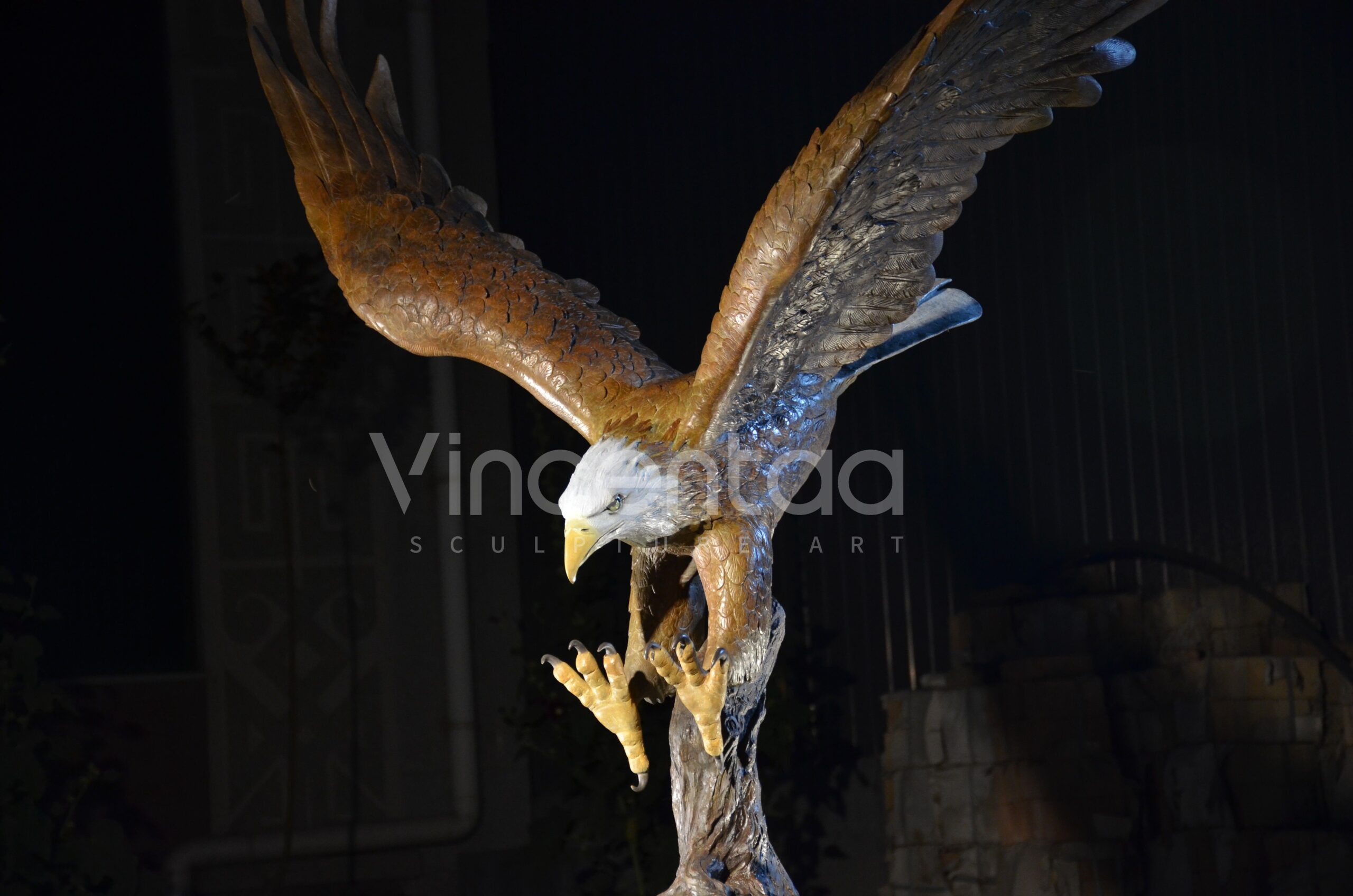 Эта бронзовая скульптура орла высотой 1,5 метра выглядит очень реалистично и демонстрирует величественную позу орла, расправившего крылья и готового к полету, символизируя силу, свободу и мужество.