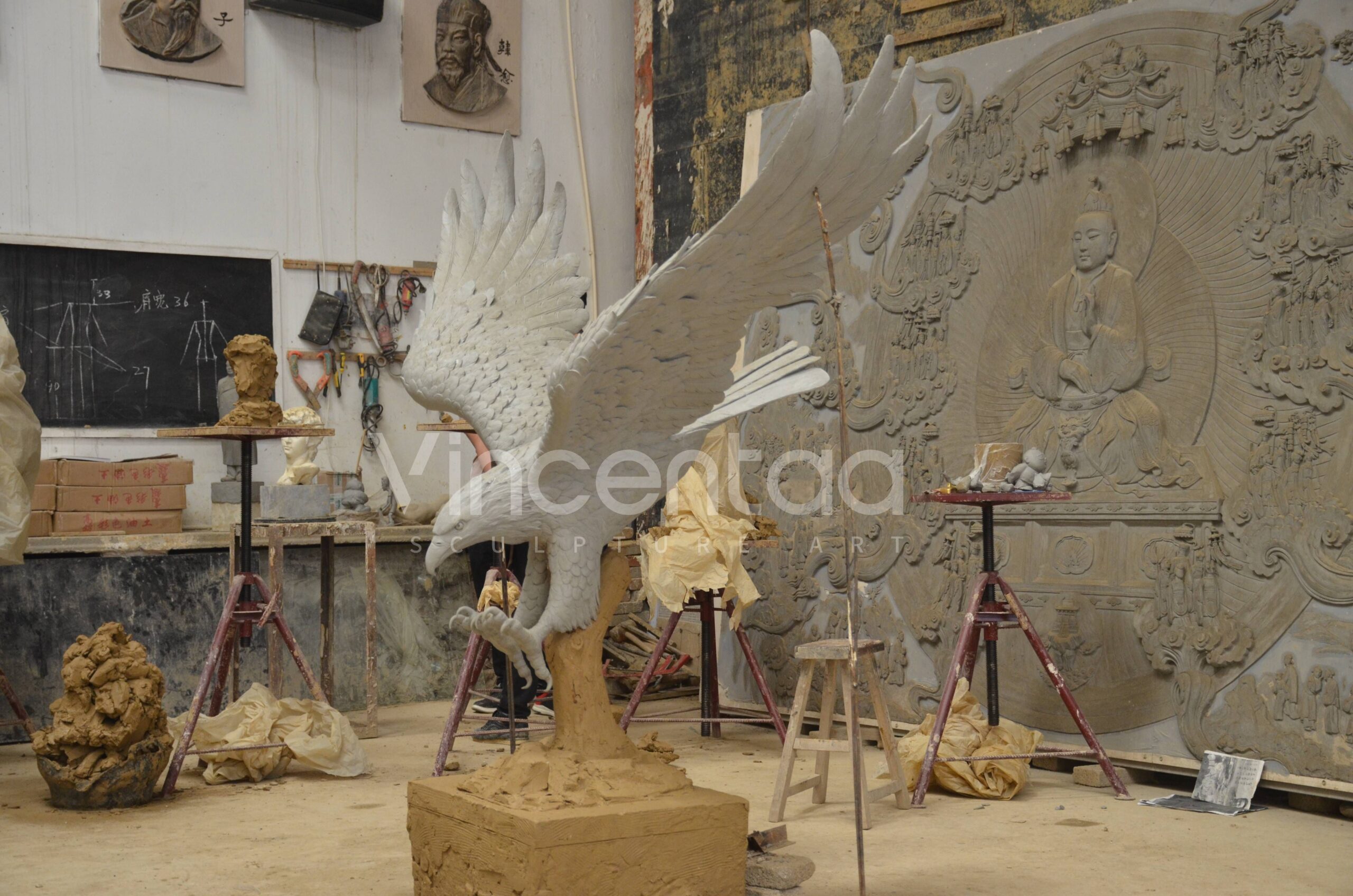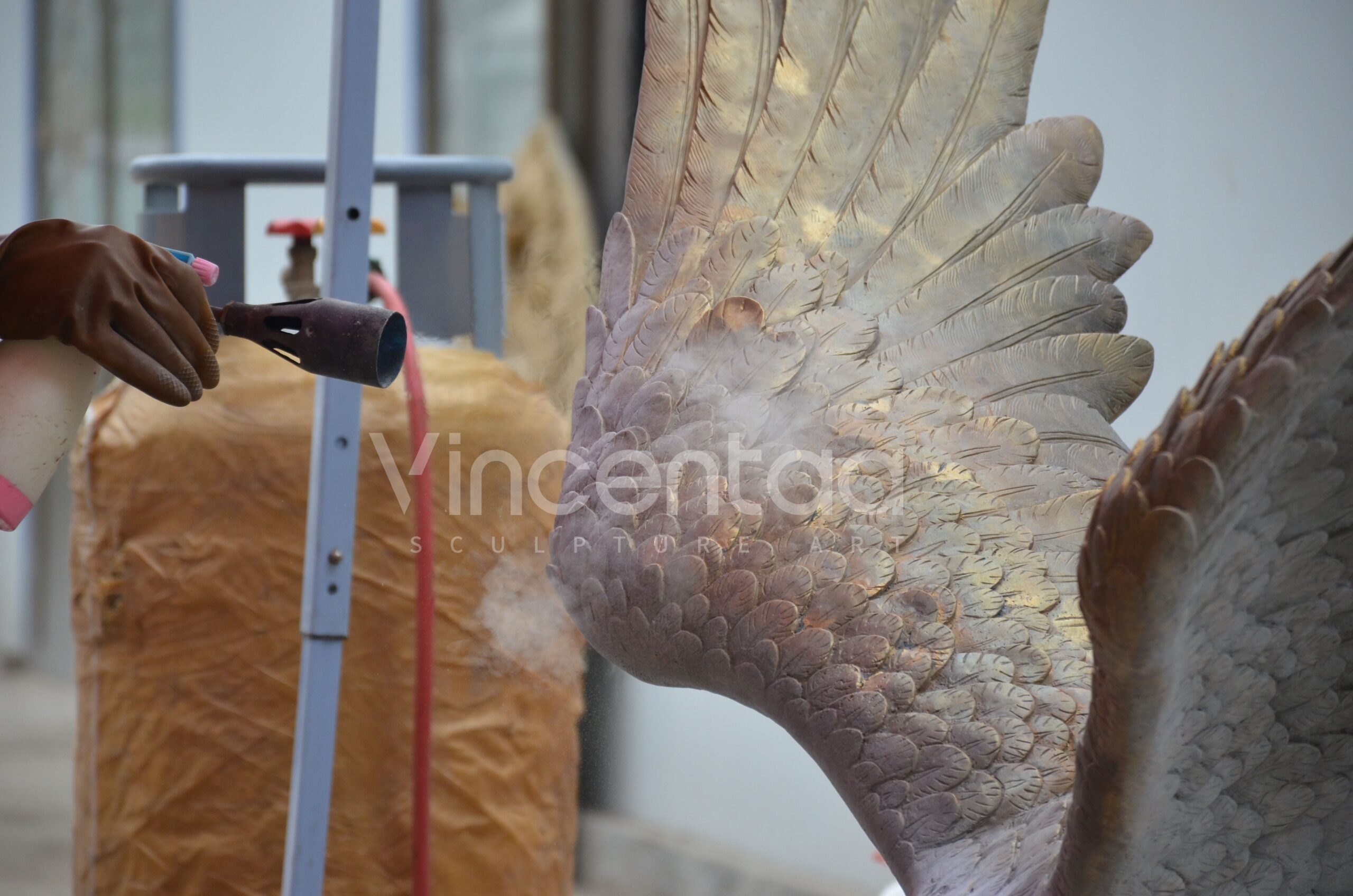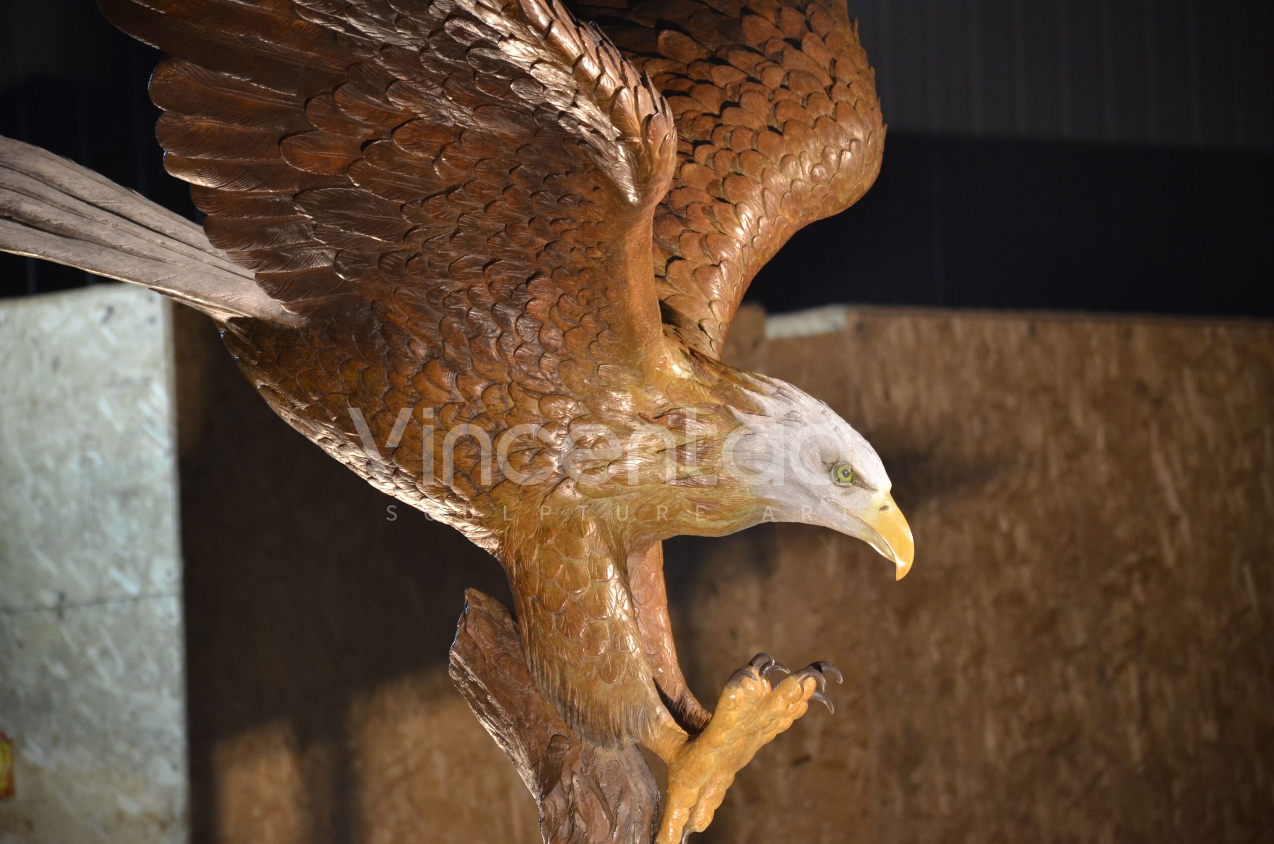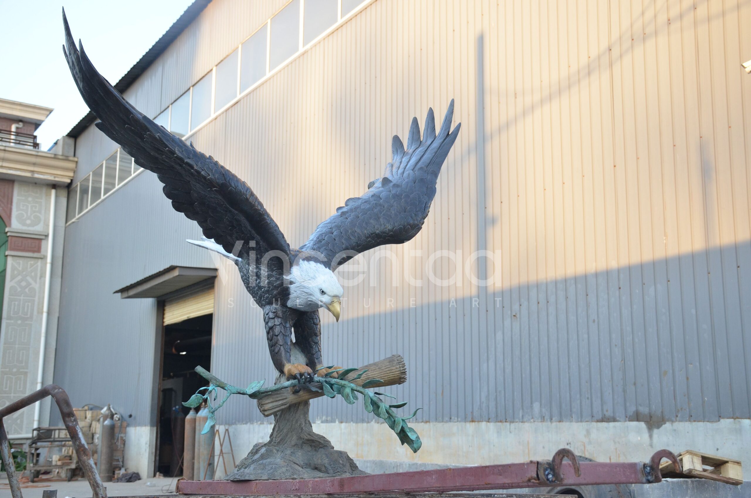 Эта бронзовая скульптура орла высотой 1,5 метра выглядит очень реалистично и демонстрирует величественную позу орла, расправившего крылья и готового к полету, символизируя силу, свободу и мужество.