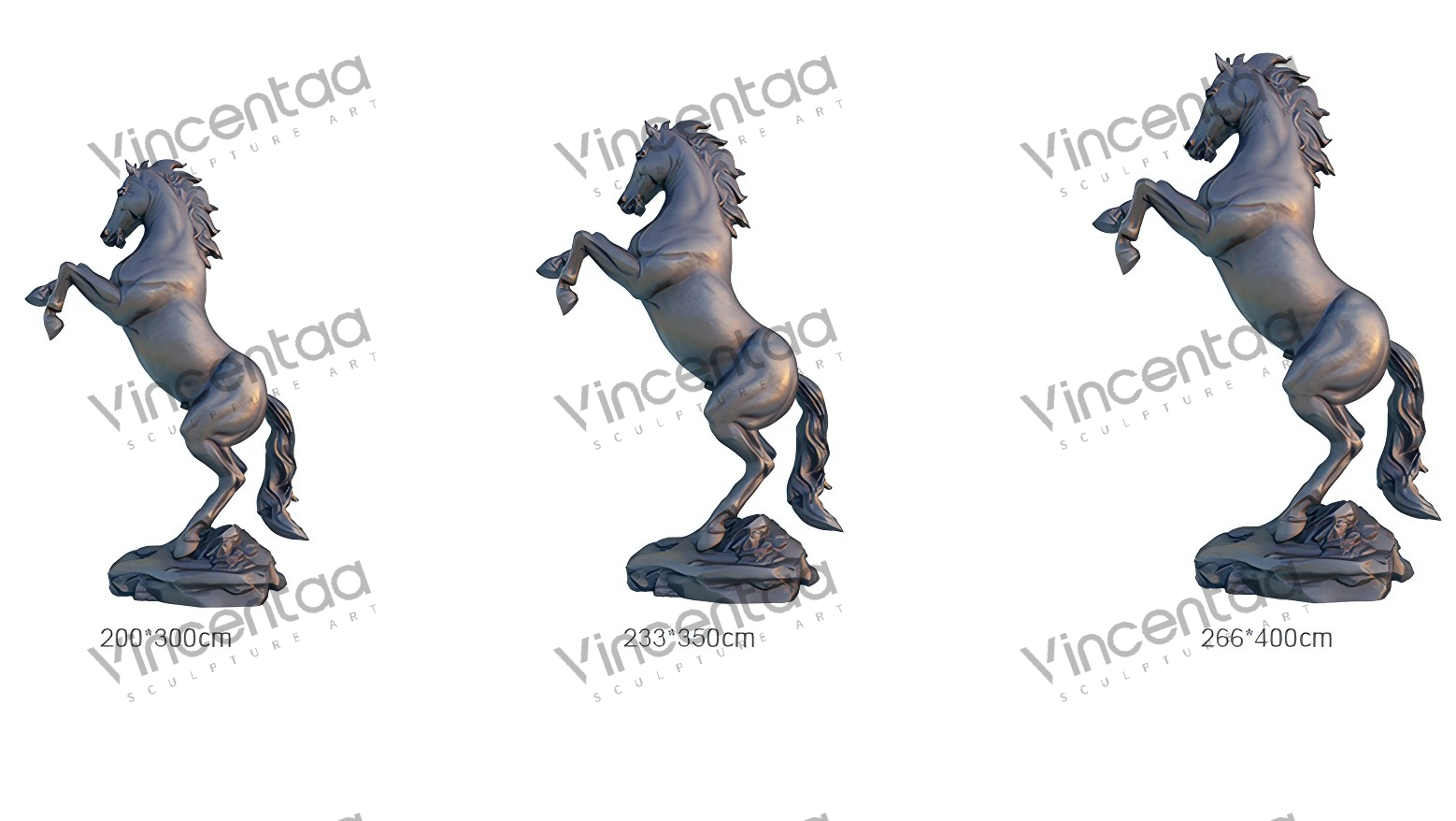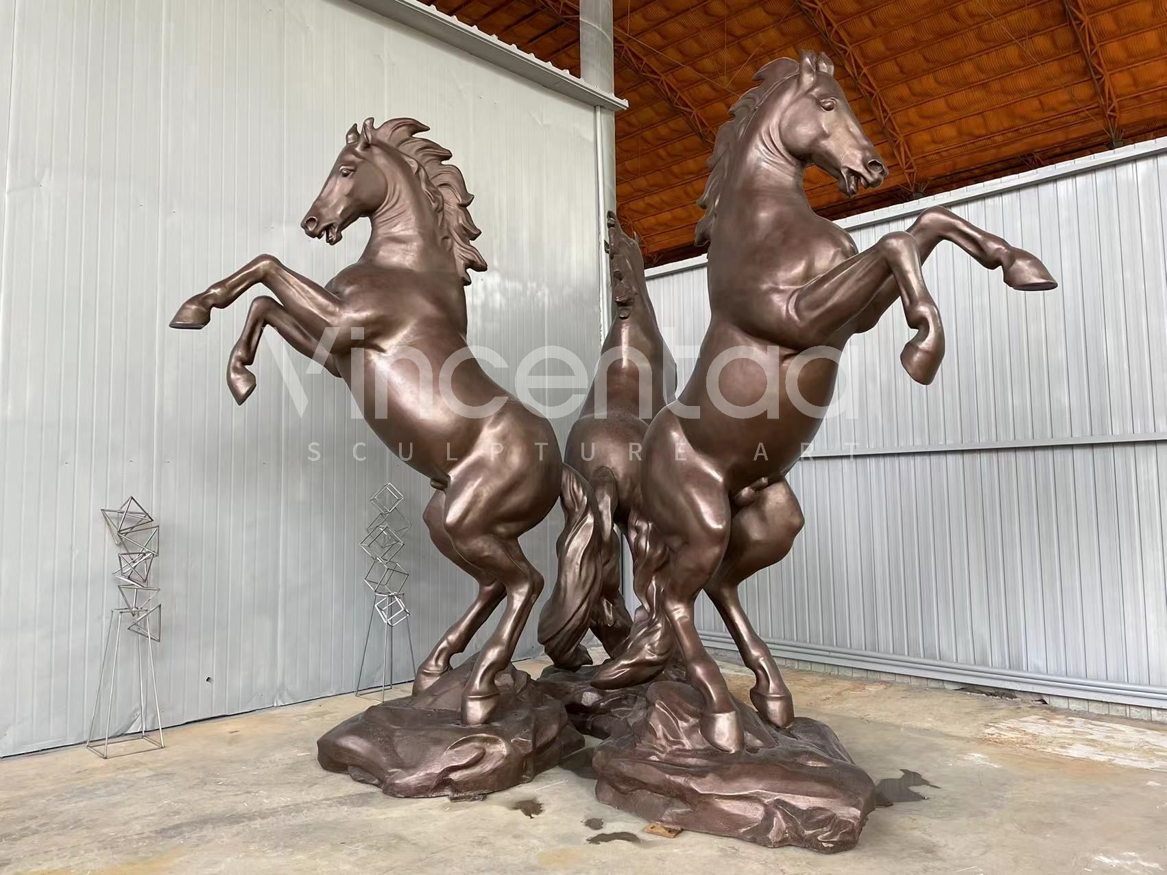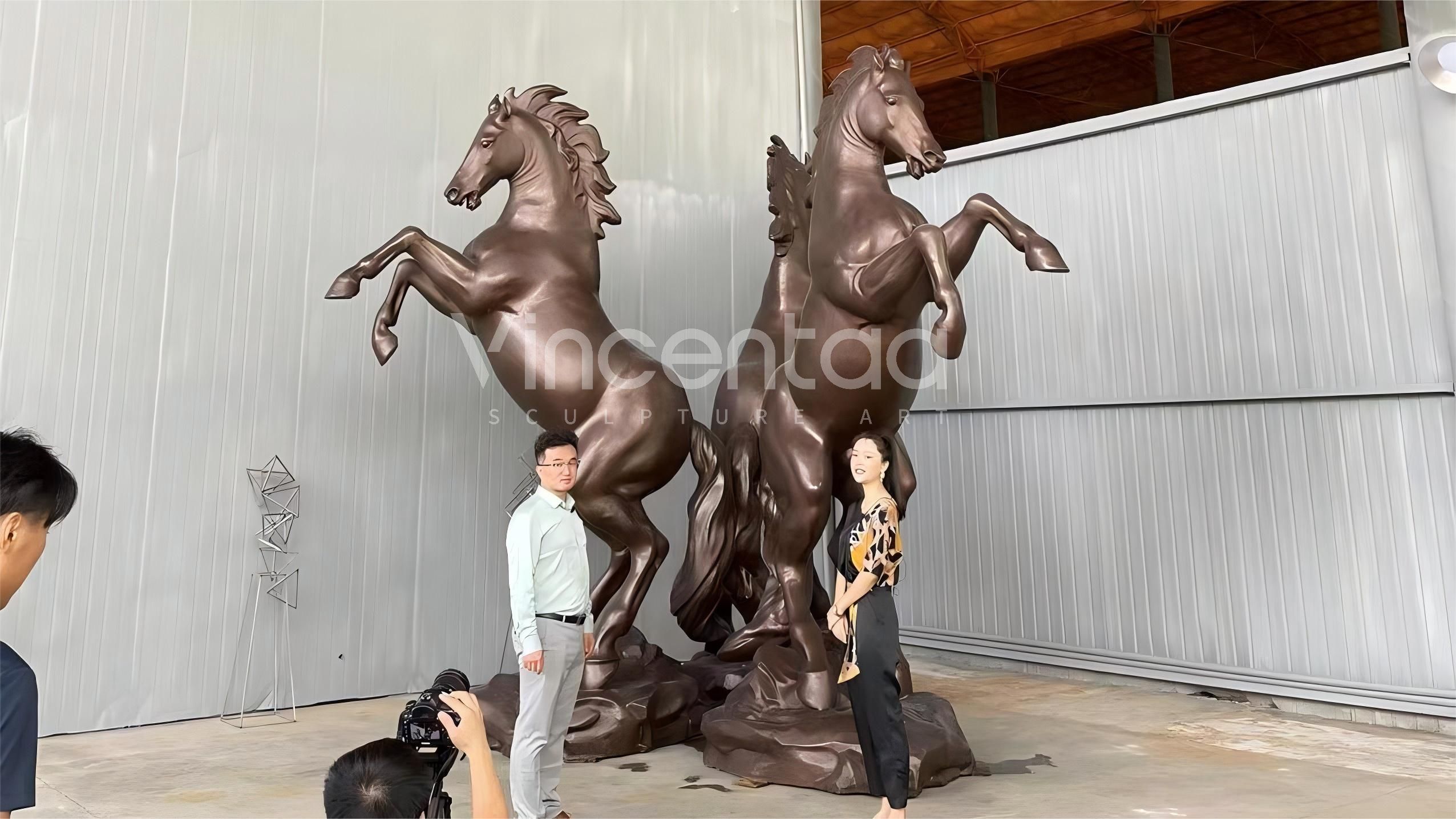 Эта группа бронзовых скульптур лошадей тщательно изготовлена фабрикой Vincentaa Sculpture Factory, имеющей более чем десятилетний опыт. Она демонстрирует динамичную позу лошади, мчащейся галопом и прыгающей, полную силы и жизненной энергии, словно лошадь, путешествующая во времени и пространстве. Скульптуры отлиты из высококачественной меди, которая устойчива к воздействию погодных условий и излучает классический металлический блеск. Она может выдерживать воздействие ветра и солнца и подходит для длительной экспозиции на открытом воздухе.