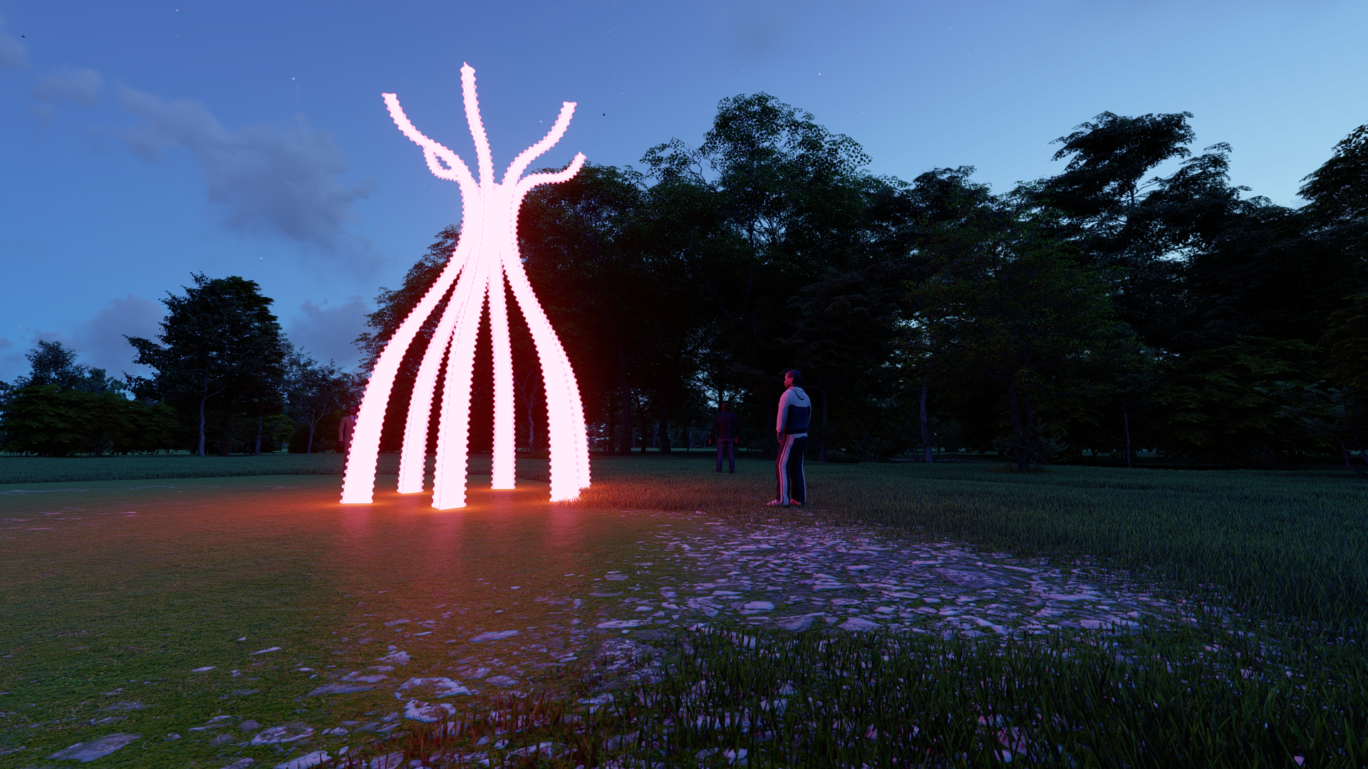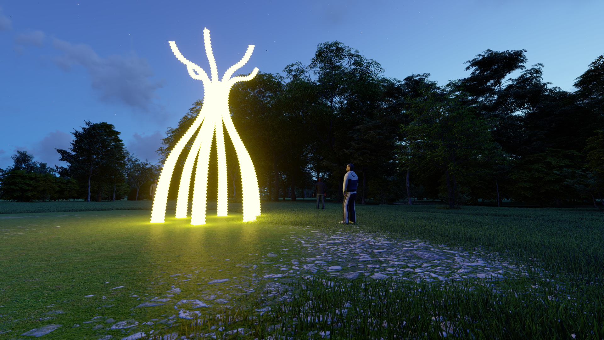 Арт-объекты органично дополнили праздничное пространство, создавая гармоничное световое оформление.