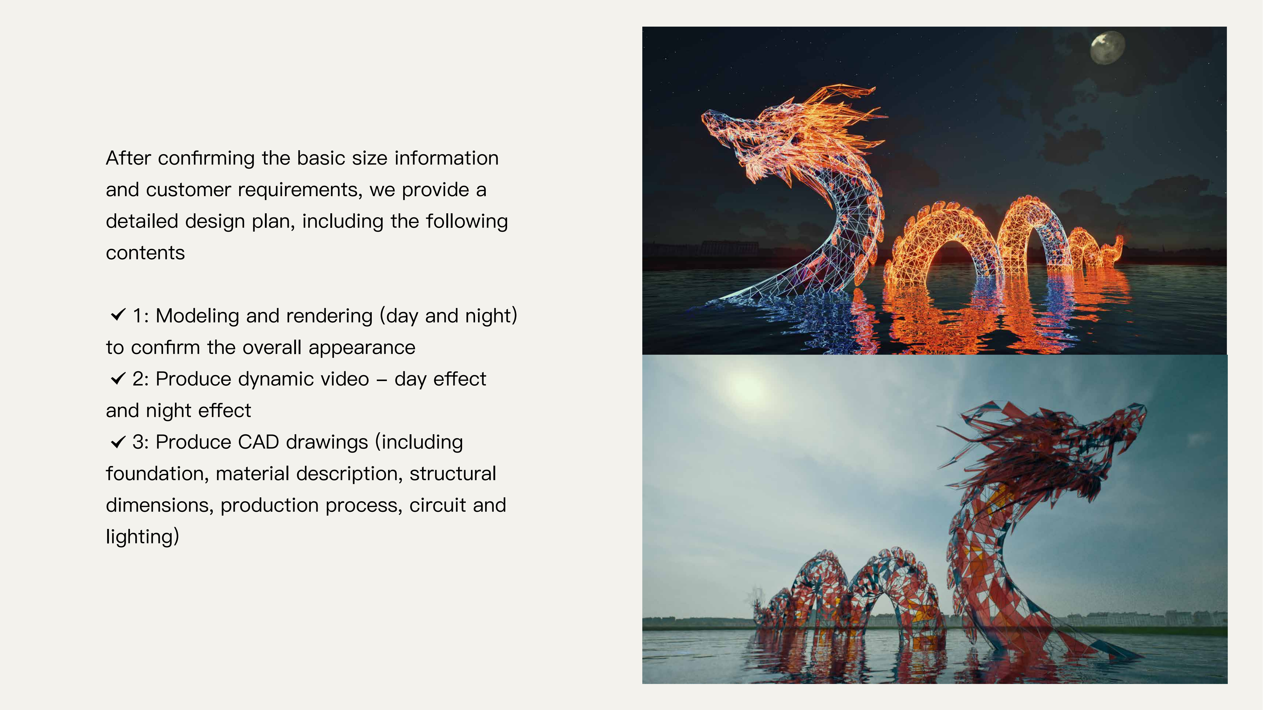 1. 3D-моделирование и визуализацию (дневной и ночной вид) для утверждения внешнего облика;