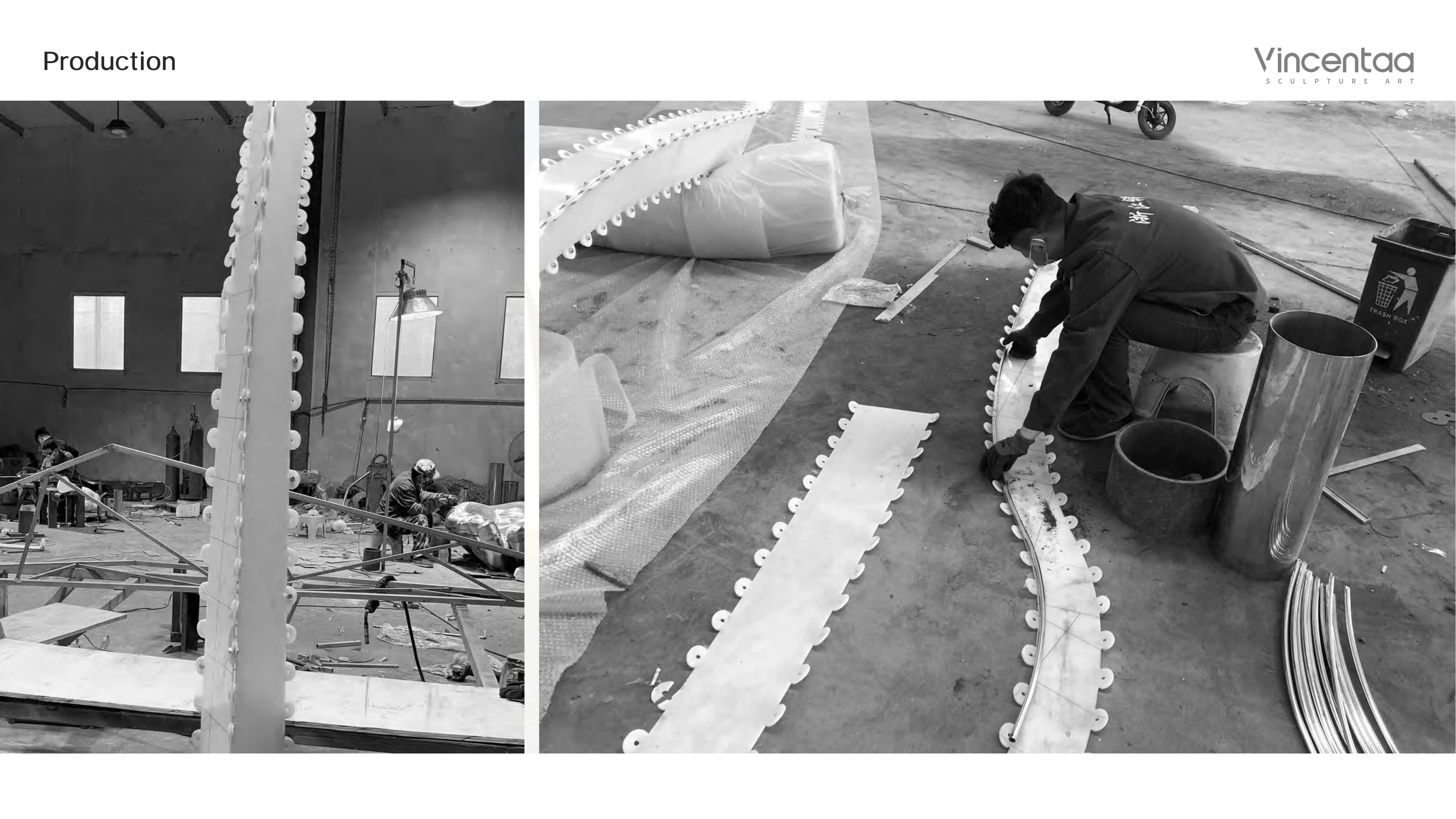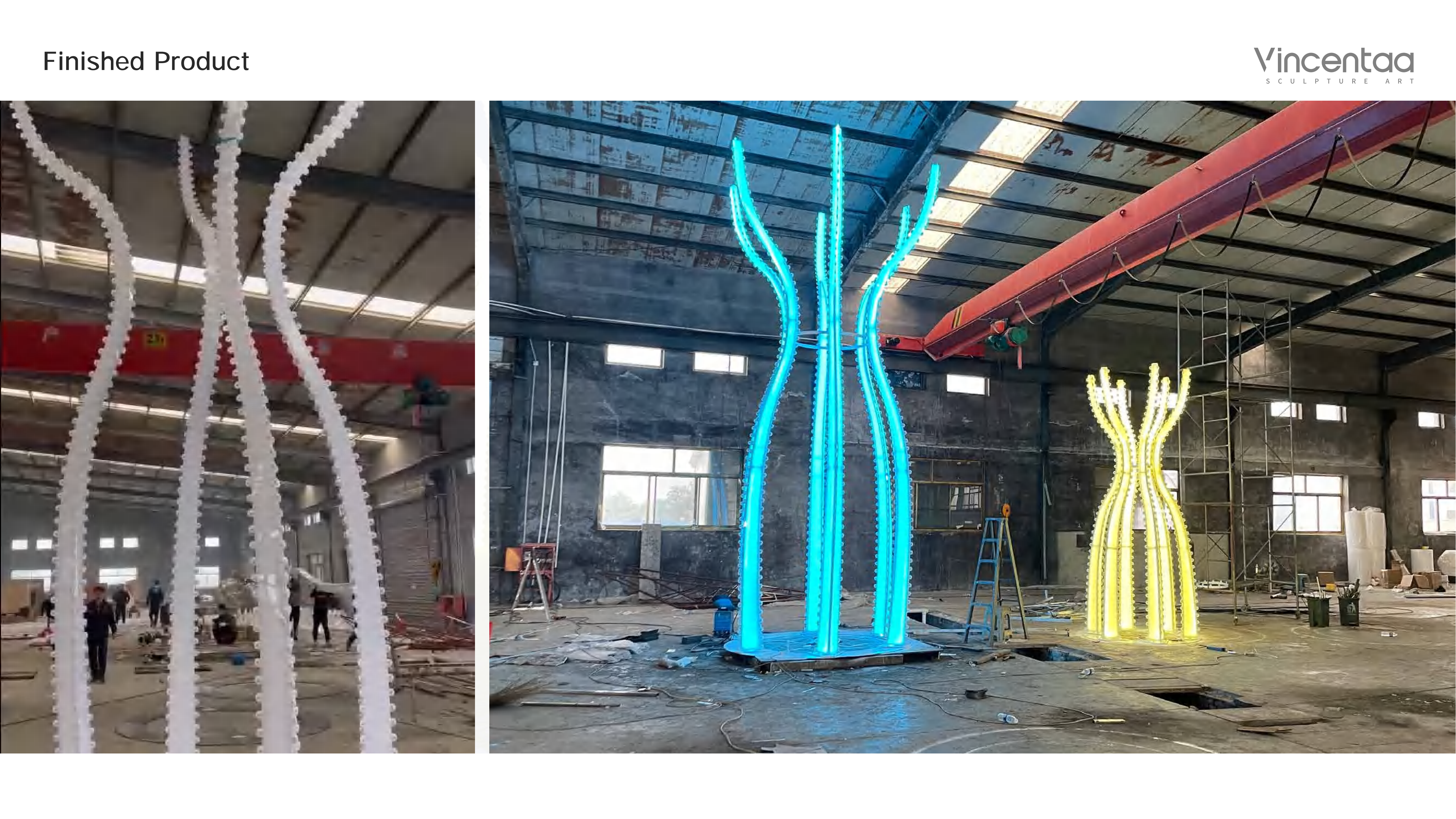 Данная световая скульптура была изготовлена по индивидуальному заказу для важного свадебного мероприятия в Бахрейне. Основной материал скульптуры — акрил с внутренней поддержкой из нержавеющего стального каркаса, встроенной светодиодной лентой и контроллером DMX 512.